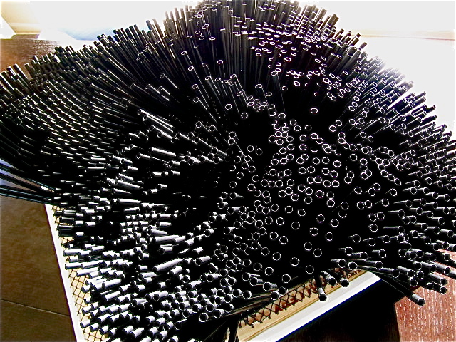 “My vision is to bring awareness and attention to recycling through an everyday article, such as a simple drinking straw, which can be transformed into a piece of art. Beauty often lies where one expects it the least,” she explains. Sometimes her work addresses ecological themes in much different form, such as Weaver Bird’s Nest, which appeared in the Heaven and Earth II exhibition last year at Carkeek Park, in Seattle. Inexpensive, beautiful and eco-friendly, Lusher’s straw art takes a fresh tack toward green concerns. Forms within Forms, 910 Broadway, July 15 – October 31, 2011. www.anettelusher. com