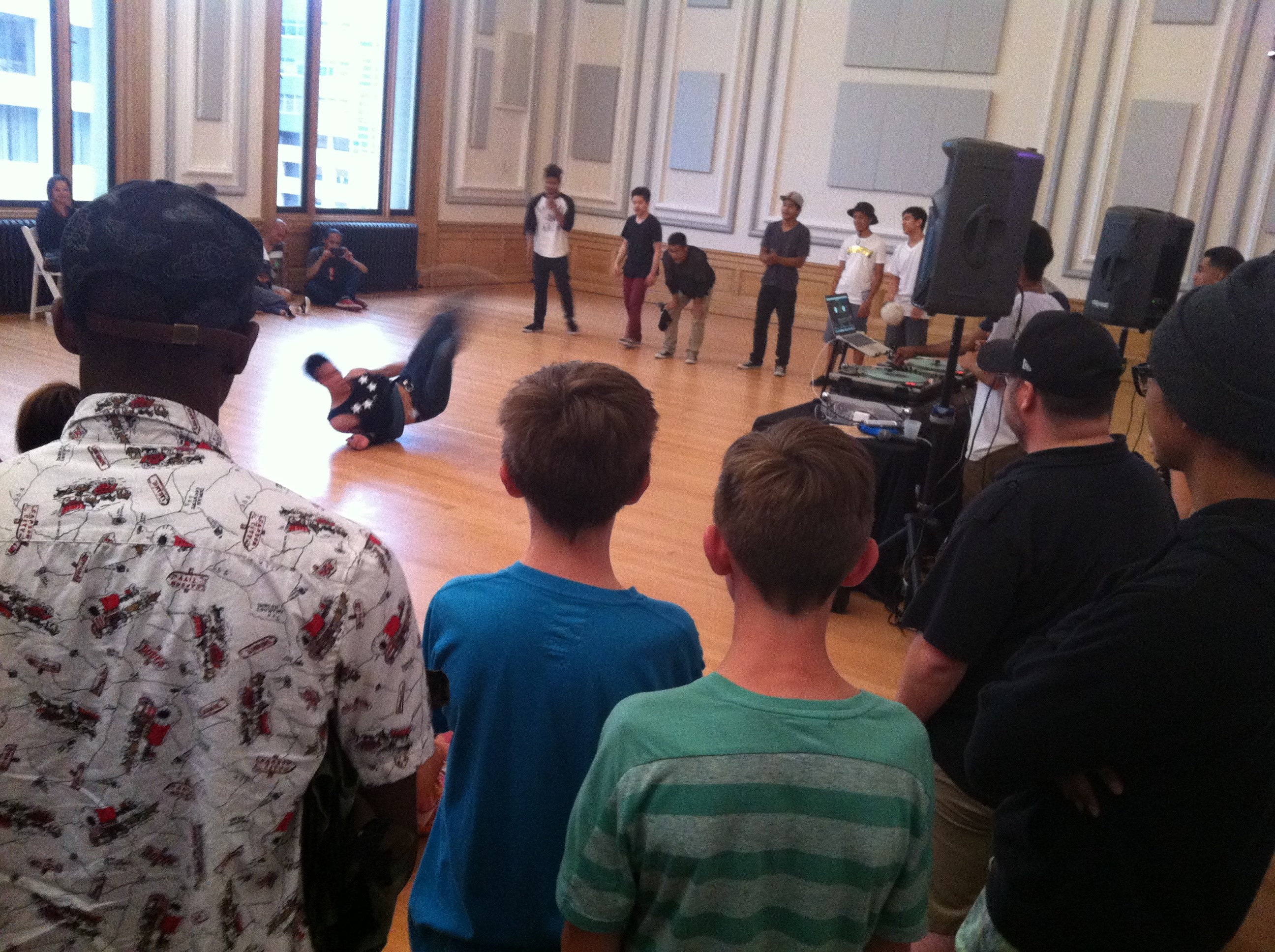 Fab5 break-dancers at the June Tacoma Post Office Building Art Walk.The Luzon Memorial Exhibition at the June Tacoma Post Office Building Art Walk.Court C Alley Mural by Travis Selin Sail Fast