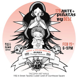 Visit Hall of Fame Vintage during Tacoma Artwalk for the opening reception of Love & Heartbreak – an art show and mixtape collaboration between Latina artists 179 and Dese.