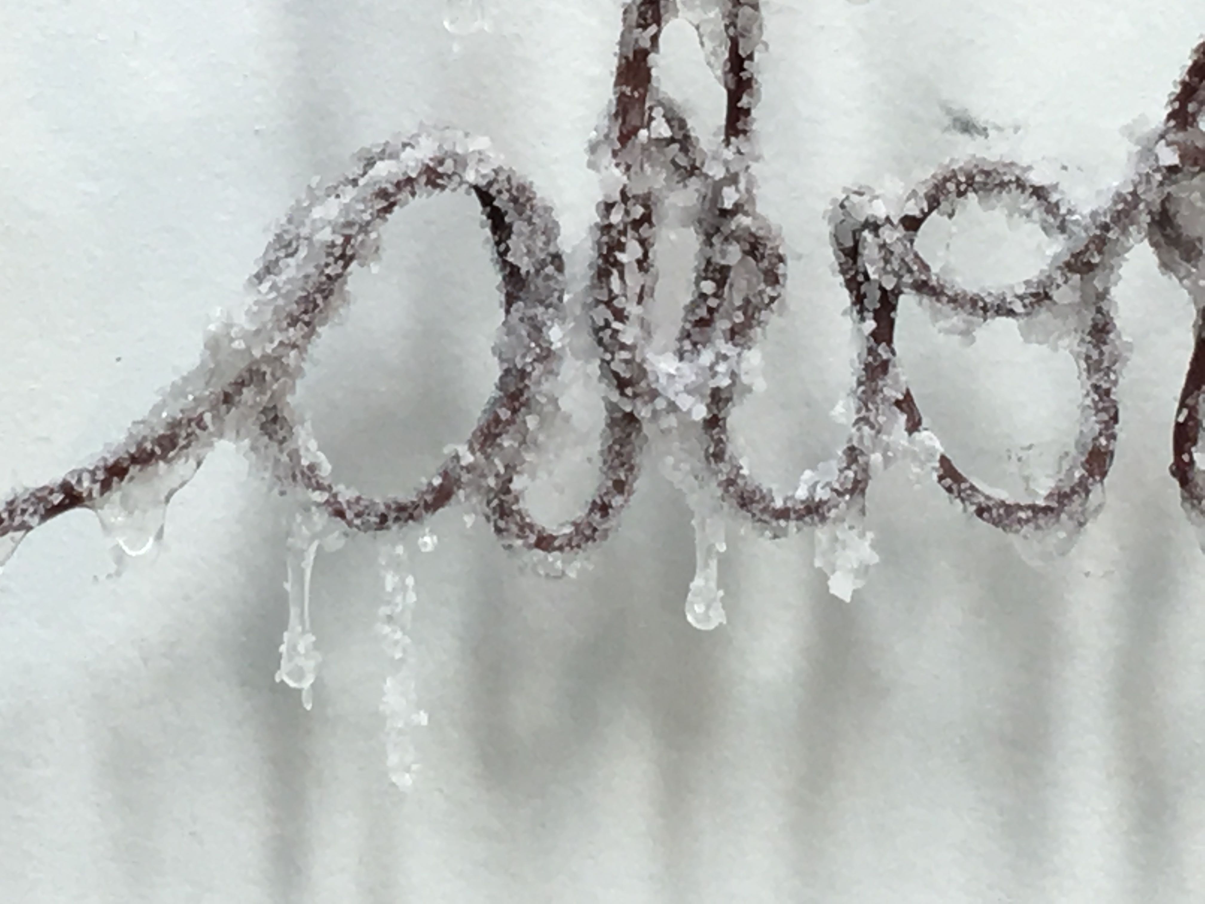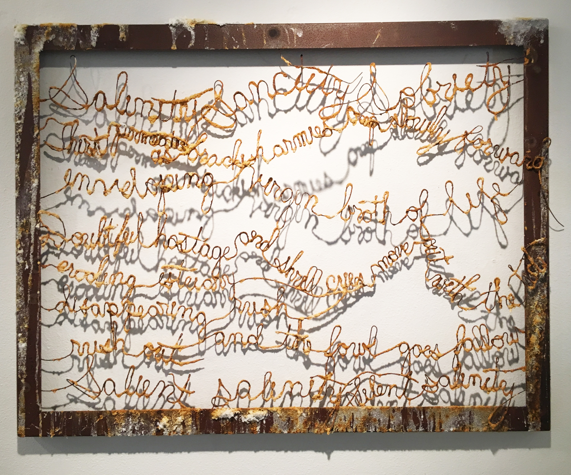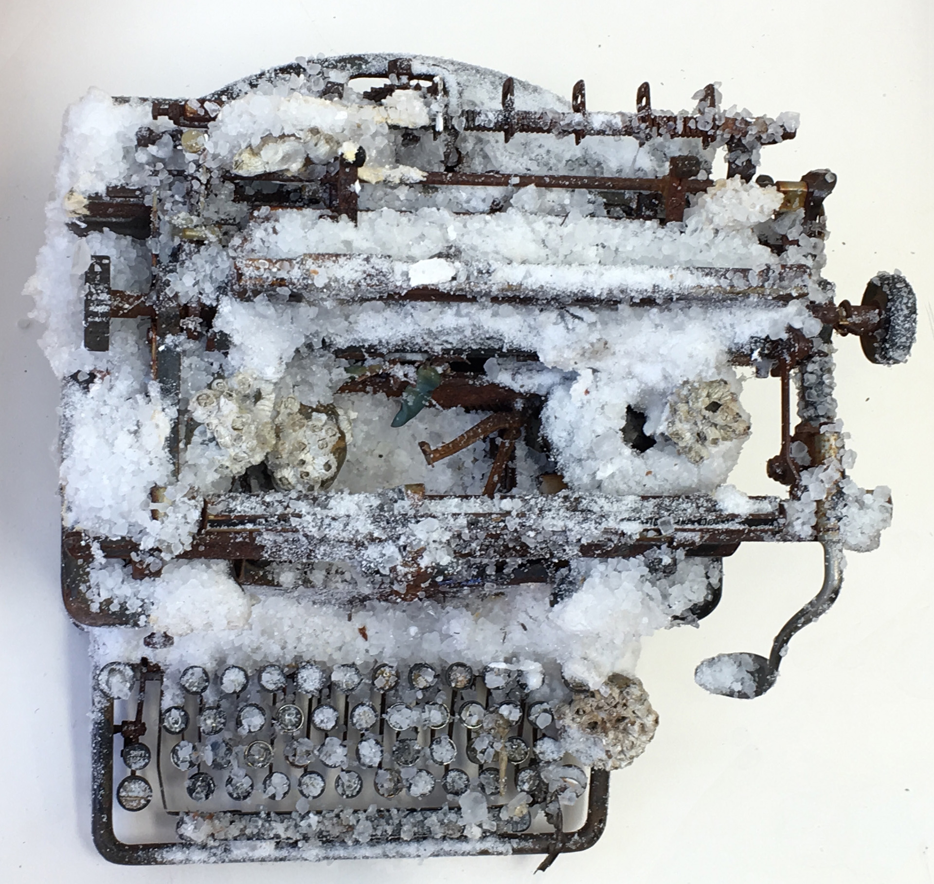 Art and science meld in salt encrusted artifacts, a dystopian landscape, poetics of language and video projection. An exhibition by Mary Coss at the 950 Gallery