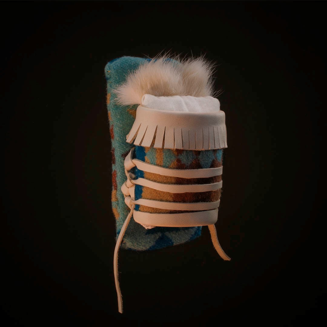 Cradleboards made with leather, rawhide, wool, and fur. Artist Paige Pettibon. Photo by Blair Alexander.