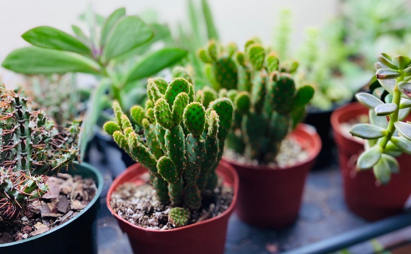 On a recent Saturday morning, masked customers moseyed in for a fresh-brewed cup from Terra Cotta Coffee, a new coffee kiosk located inside Jade & Co., and savored a break from coronavirus isolation while perusing plants. The store is laid out in four sections to give four types of plants the right amount of natural light they need: bright (e.g., cacti), medium (pepperonia, philodendron, spider plants), low (variegated snake plants), and artificial (to pamper the succulents, including baby plants in propagation trays). A humidifier keeps moisture-loving plants such as staghorn ferns and calathea happy.