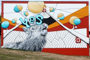 Mindy Barker, “Yes”, 29’x46’ acrylic mural (2014)