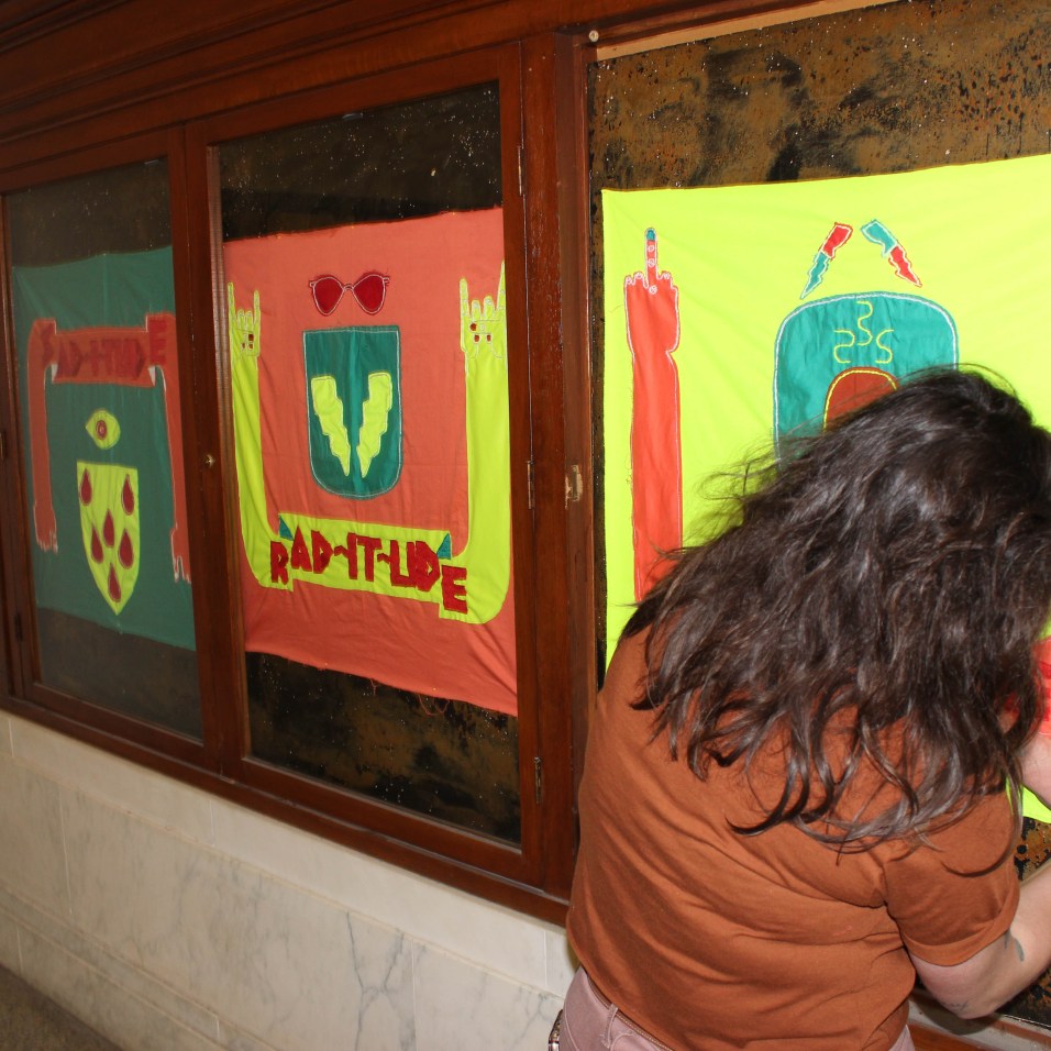 Gillian presents a series of hand-sewn cloth works inspired by flag design, classic coat of arms styles, and embroidery techniques