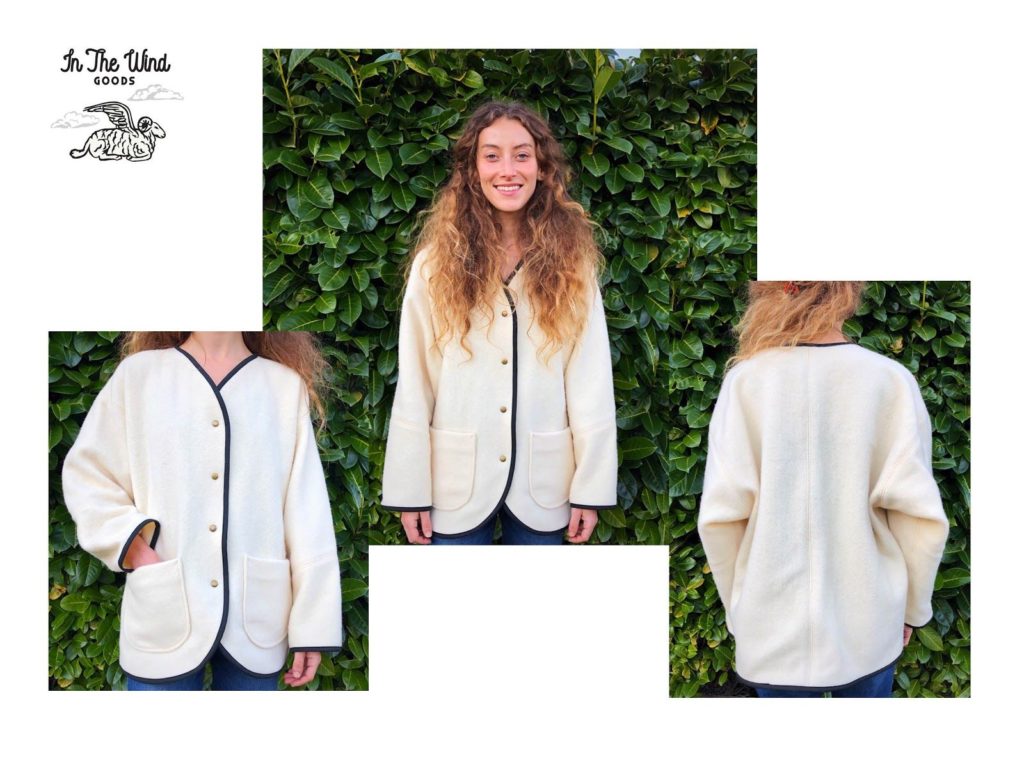 Rosalind Casey draws upon her experience and skills as a designer, production cutter, and sewer to create In the Wind Goods. Its mission is to celebrate a love of vintage and transform discarded woolen materials into timeless fashion pieces.