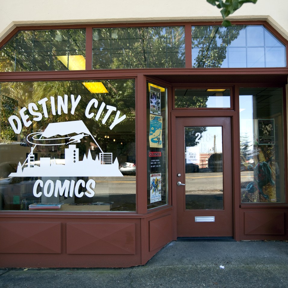A fun place to get comics in Tacoma. Come to Destiny City Comics for traditional comics, critically-acclaimed graphic novels at discount price, independent comics, and works by local artists. Destiny City Comics is Spaceworks Alumni that identified and leased their own space in September 2014.