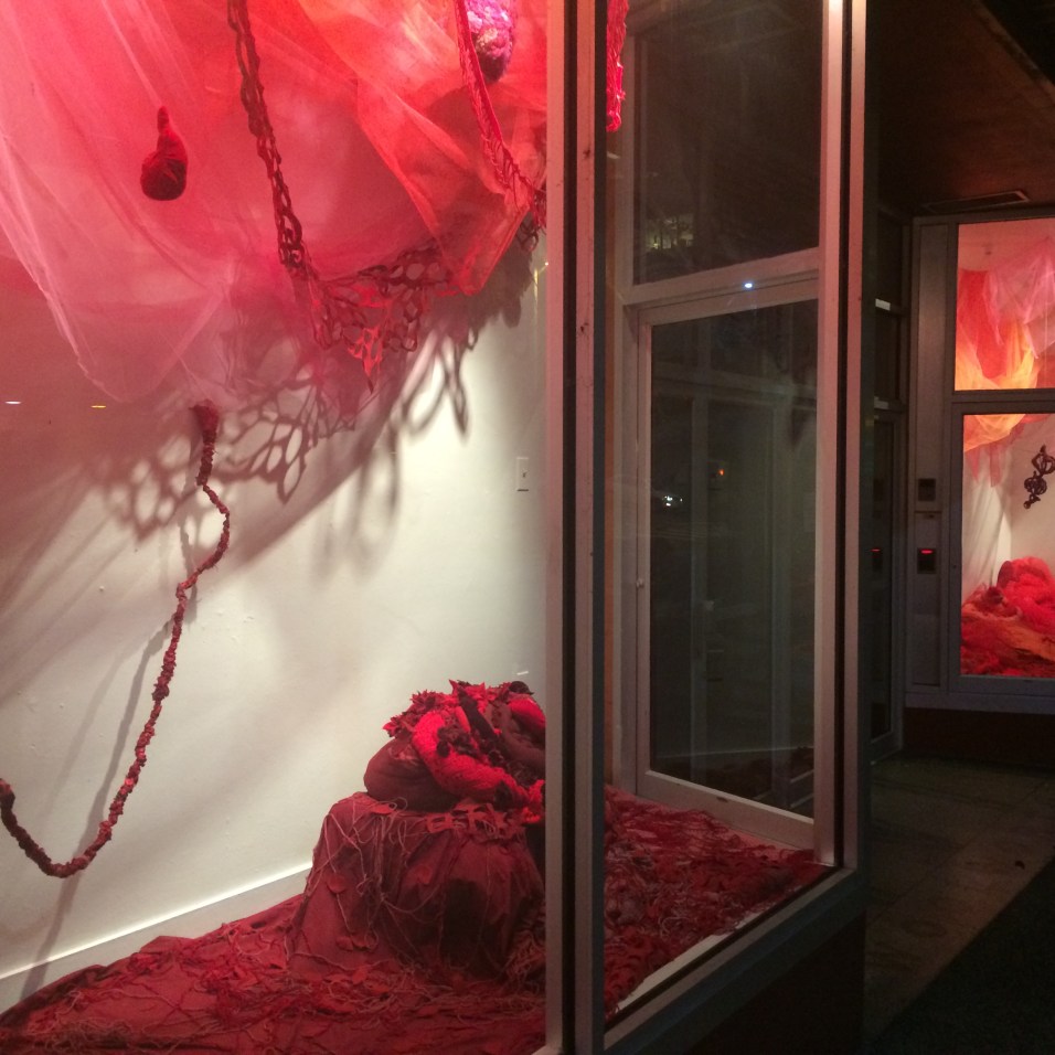 Individual sculptures within the installation represent different emotional states and as a collective, they resonate, collaborate, and collide. Just as the space is layered with different fibers, human biology is layered with latent emotional states.