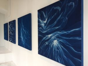 As both a landscape architect and sculptor I was drawn to this medium because of its direct interaction with light. What I find most compelling about working with cyanotypes is that it allows me to layer and build three dimensional compositions that then get translated onto a two dimensional plane. The beauty of the process is that end result is always a surprise due to the somewhat unpredictable nature of this photographic medium. This, combined with the abstract nature of the imagery I use allow for each viewer to interpret the work as they choose.