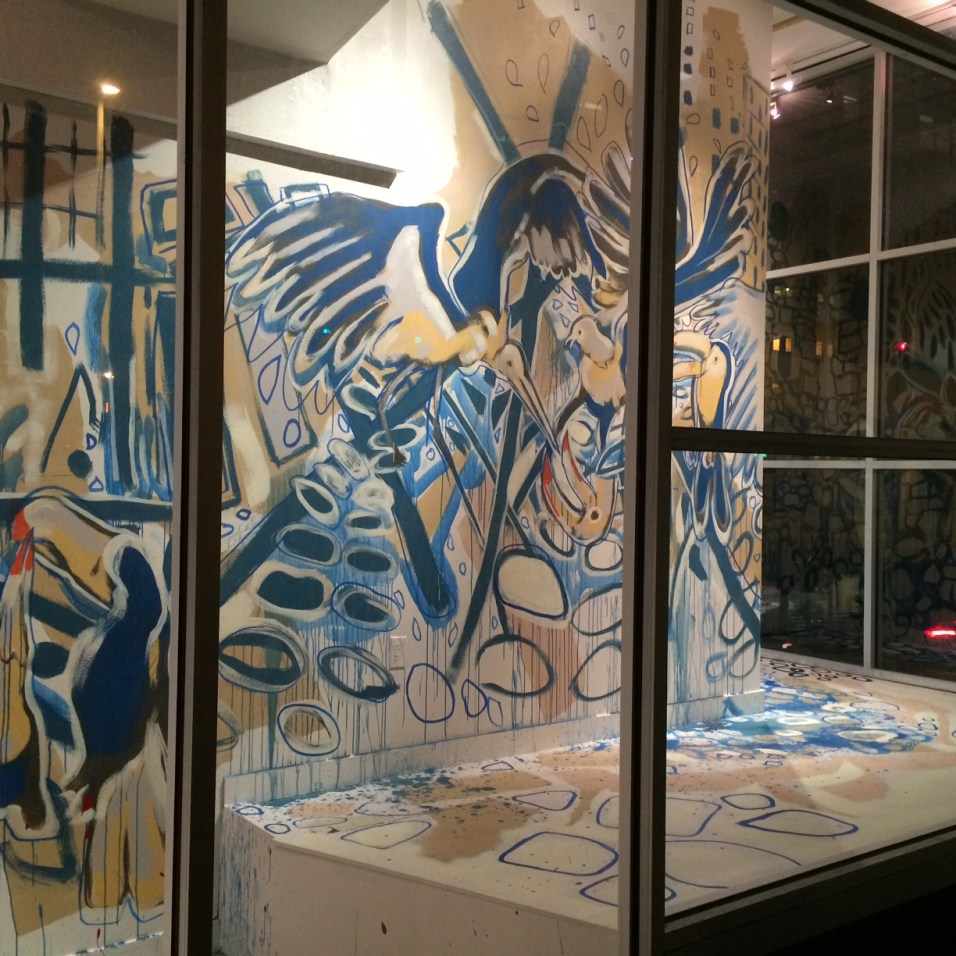 “This idea of gluttony is reflected in our current culture. We are a hedonistic society, always looking for more until the more we are looking for loses its meaning. This installation was created as a backdrop for an artist book I am currently working on. I received a GAP grant from Artist Trust to publish a small book of drawings that provide context to a large body of work. The book tells the back-story behind a series of paintings I have created over the past 6 years. This installation follows a similar commission through the Shunpike Storefronts Project in Seattle, continuing to develop a landscape in which the book of drawings can find context.”