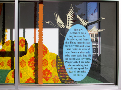 “Grimm’s Six Swans has always been a tale that has resonated with me. As a child the magical transformation from human to swan sucked me in, but revisiting it as an adult the careful patience that the sister must go through in order to save her swan brothers is the alluring part. She cannot speak for six years and must painstakingly weave tunics out of star flowers. When she is accused of witchcraft she remains silent in fear of loosing the chance to change her brothers back to human, yet she continues to obsessively weave the cloth even as she is about to be burnt at the stake.”