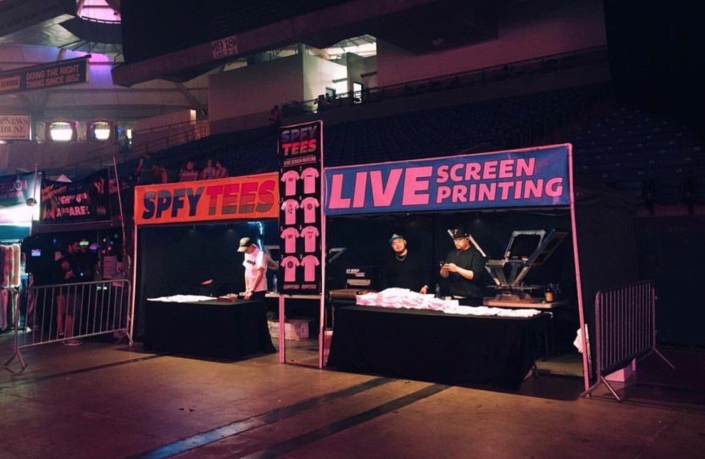 SPFYTEES offers interactive garment decorating of official merchandise for venue promoters at their events in order to increase customer engagement. They activate a space that offers a free experience and tangible product for the event participant.