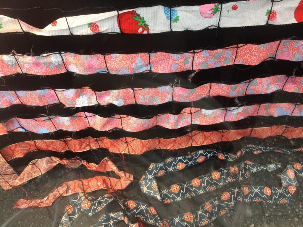 I wove kimono and yukata fabric, instead of hemp, into netting to send pride of heritage back to my community, as the trauma of incarceration had brought shame and pushed us to lose traditional culture as we integrated into white America.