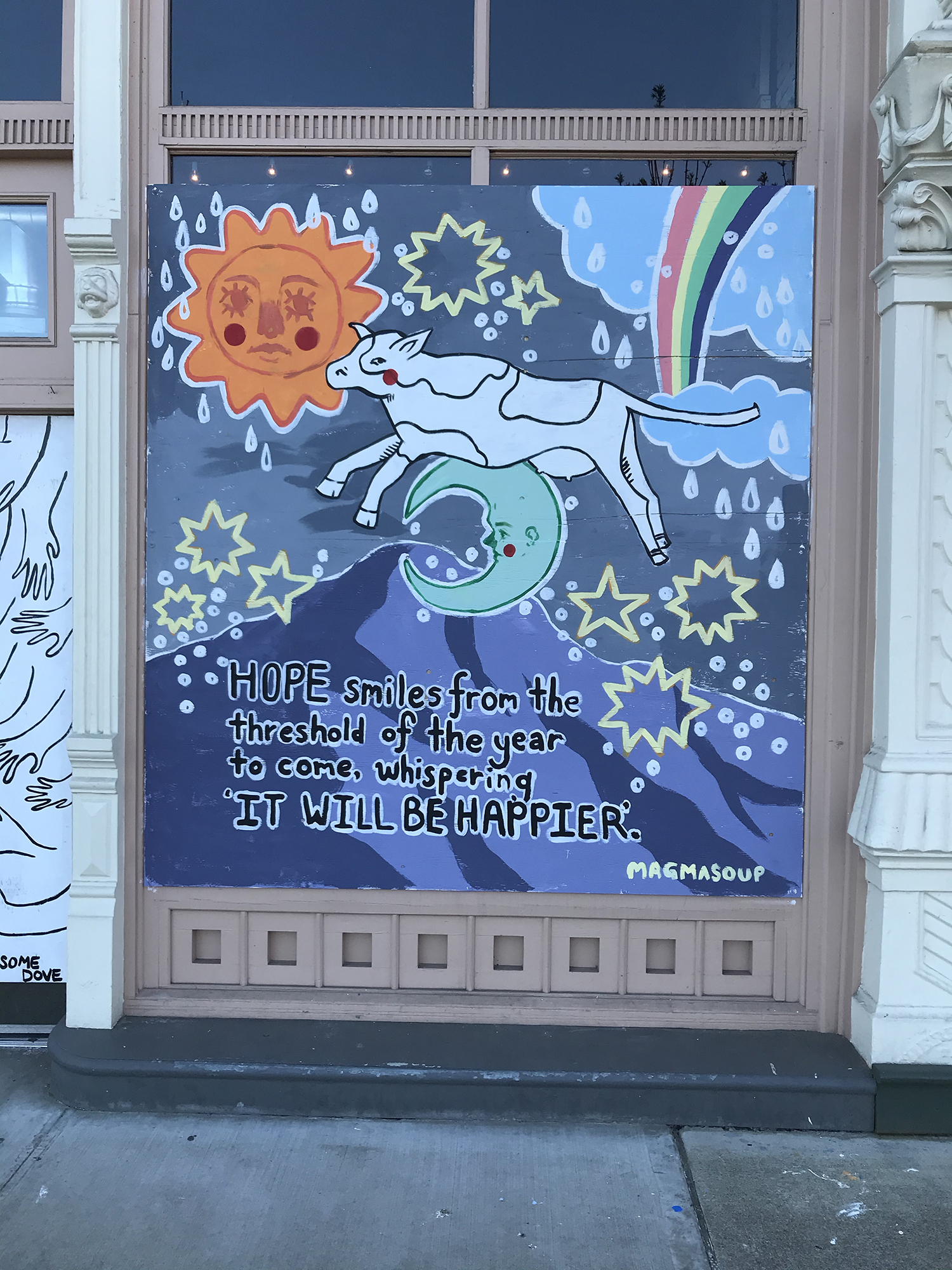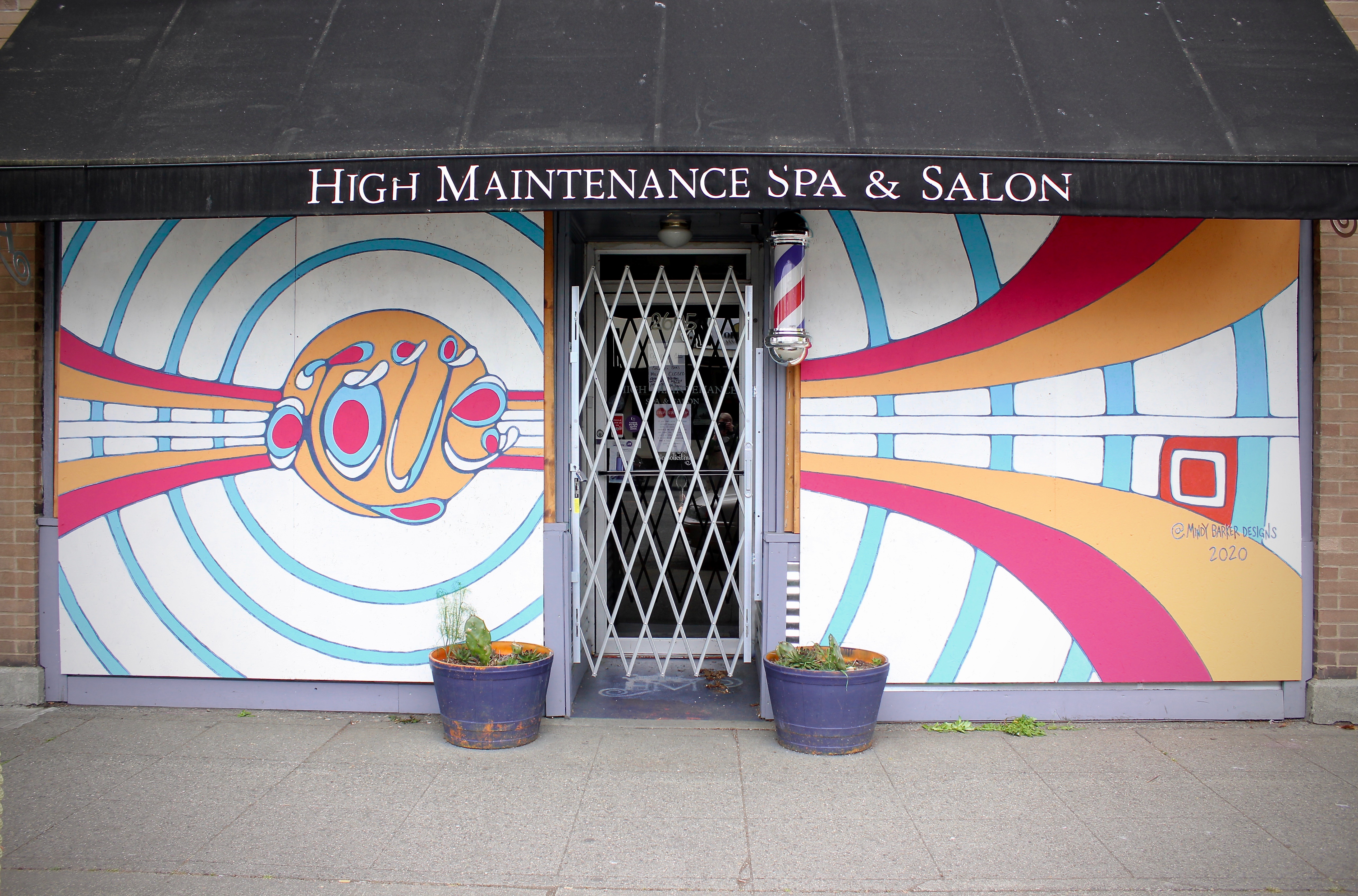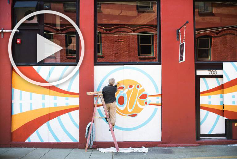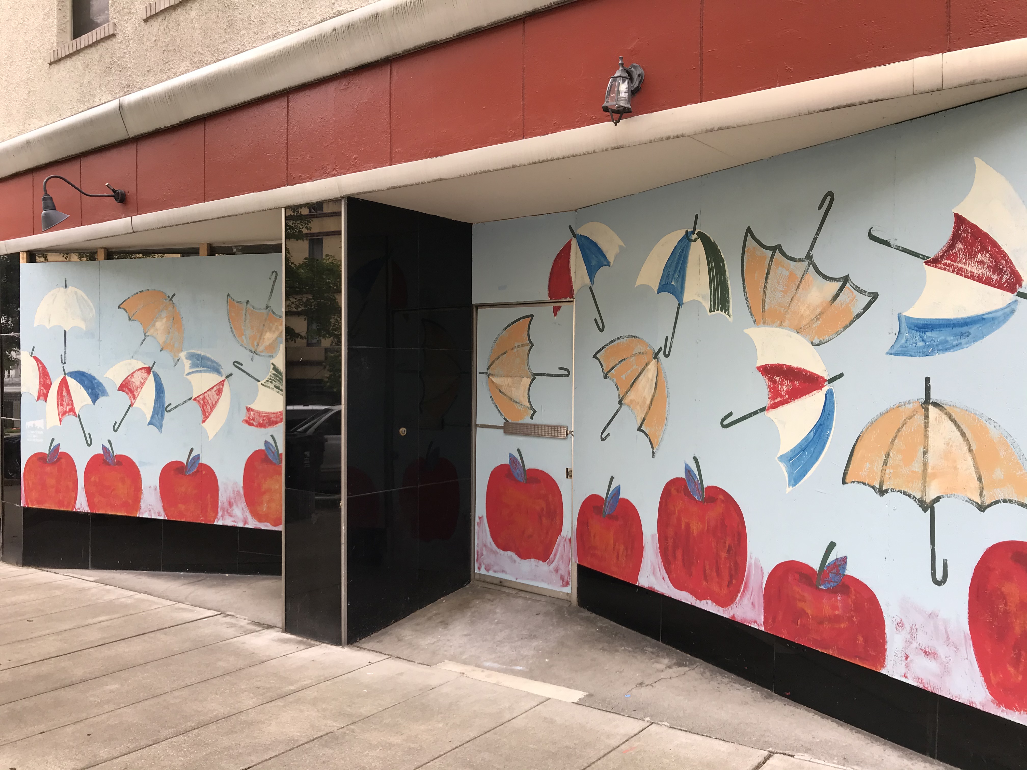 These temporary murals, painted directly onto installed plywood panels, serve to 1) support local businesses, 2) reduce crime and unwanted graffiti, 3) provide income for local artists, and 4) offer civic hope and positive messaging.
