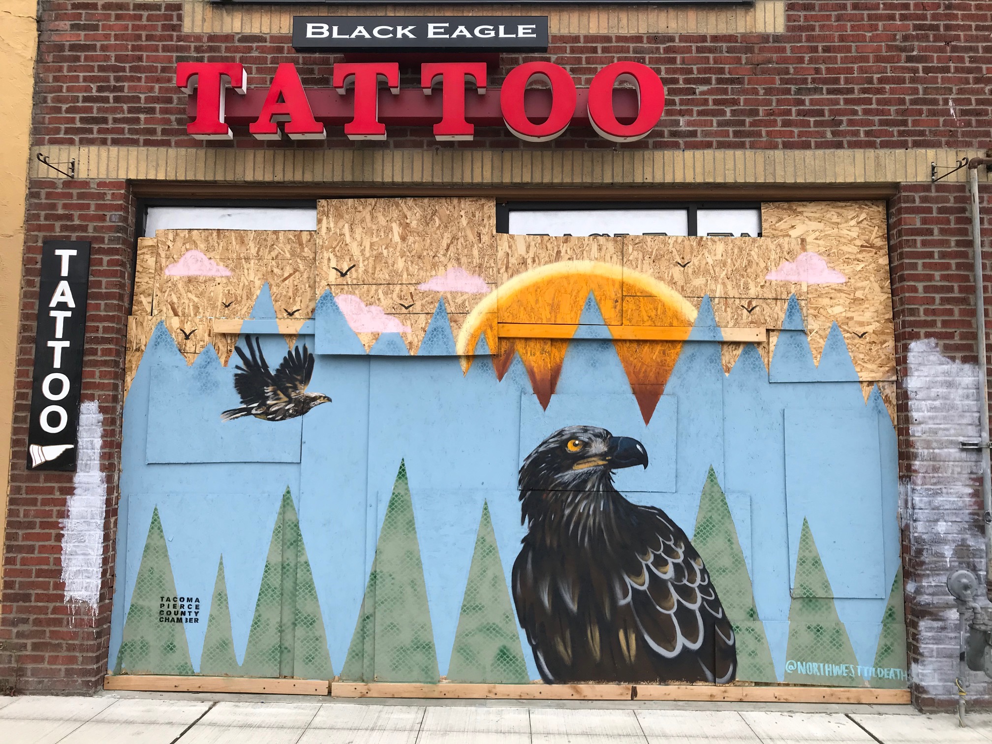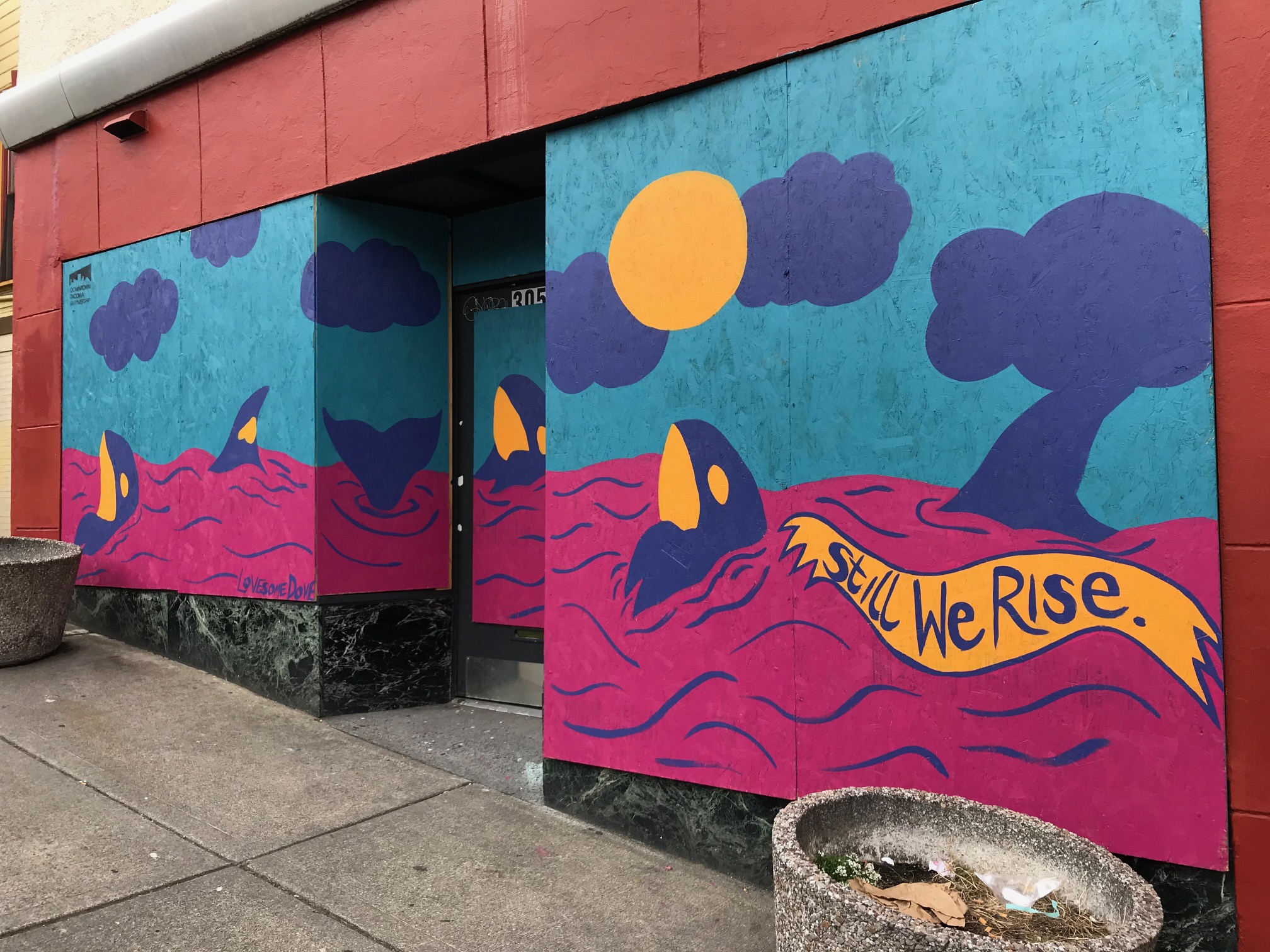 In response to boarded-up businesses in Tacoma during COVID-19, Spaceworks has partnered with local organizations and businesses to create a rapid mural program.
