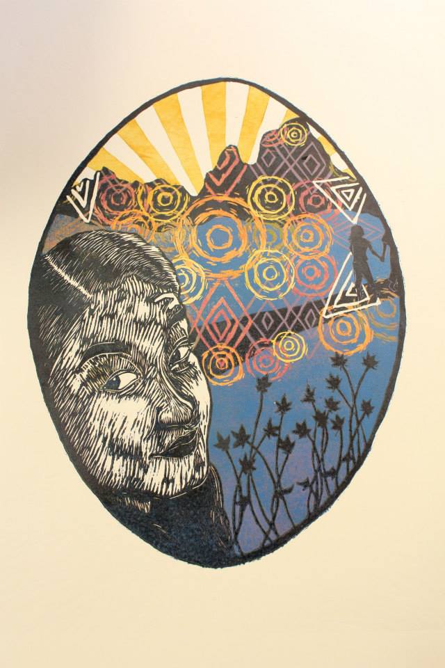 Saiyare Refaei, “Reflection 3”, 17×11” 7 color reduction woodcut print (May 2014)